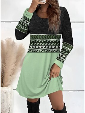 Női Mini ruha Pólóruha Nyári ruha A vonalú ruha Alkalmi Napi Alkalmi Normál Grafika Mértani Hosszú ujj Terített nyak Arcpír rózsaszín Rubin Lóhere Ősz Tél