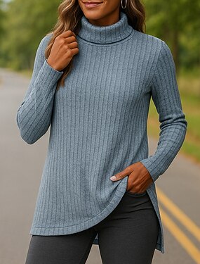 Női Pulóver pulóver Garbó Hosszú ujj Felsők Sportruházat Magasnyakú Egyszínű Divat Meleg Szabadtéri sportruházat Sportruházat Stétszürke Fekete Rubin