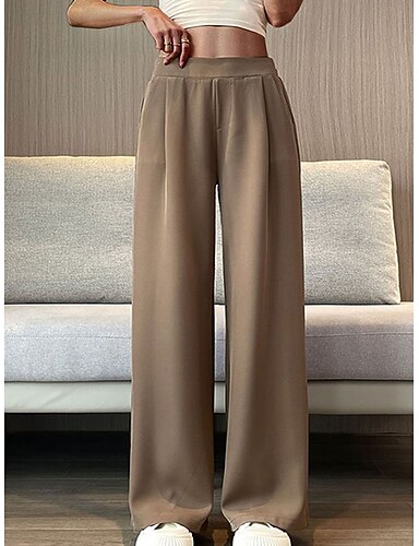Női Kosztüm Széles lábszár Nadrágok Elegáns Divat Utcai sikk Teljes hossz Magas derék Sima Maillard Zseb Buggyos Magas vágás Mokaszinok Lélegzési képesség Mekano Mikroelasztikus Munka Utca Üzleti
