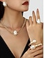 Női arany gyöngy ékszerkészlet partira - vastag lánc nyaklánc, feltűnő fülbevalók, karkötő és gyűrű, barokk stílusú elegáns kiegészítők estélyi alkalmakra &hivatalos események