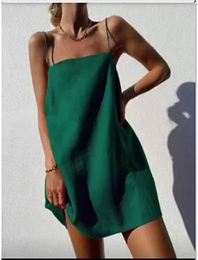 Női Fehér Pezsgő Lóhere Nyár Tavasz Szabályos Mini ruha Vászon ihletésű ruhák Pamut vászon ruha A vonalú ruha Divat Alkalmi Ujjatlan Munka Napi Randi Normál Sima Spagettipánt Pánt nélküli