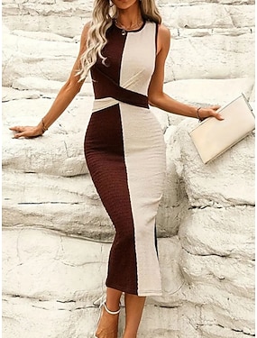 Női Midi ruha Fekete ruha Kötött ruha hétköznapi ruha Bodycon Elegáns Alkalmi Vakáció Munka Napi Normál Sima Ujjatlan Terített nyak Barna Nyár