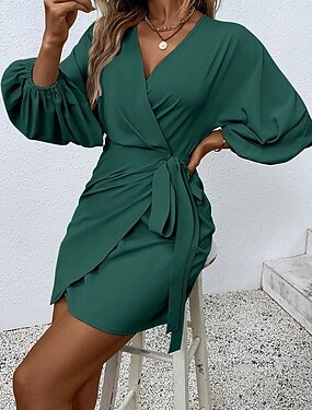 Női Mini ruha Flitteres ruha Party ruha Koktélruha Köntösruha Elegáns Modern Parti Estély Koktélparty Normál Sima Hosszú ujj V-alakú Fekete Rubin Medence Lóhere Ősz Tél