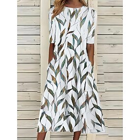 Női Nyomtatott ruha Midi ruha Midi ruha Lóhere Raglansleev Virág / Növények Nyomtatás Tavaszi nyár Csónaknyak Strand stílusok Vakáció XS S M