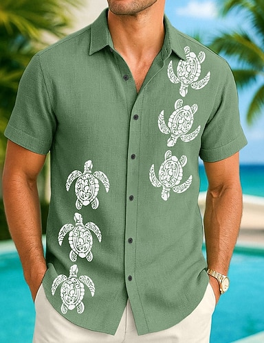 Férfi Ing Vászon ing Nyári póló Strandruházat Gombos póló Virágos Vakáció Curise Arcpír rózsaszín Sötétkék Lóhere Khakizöld Rövid ujjú Gallér Nyár Tavaszi nyár Ruházat