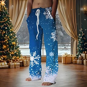 Karácsonyi hawaii nadrág Férfi Hópehely Nadrágok Közepes csípő Elasztikus derékrész húzózsinórral Alkalmi Party estélyi viselet Szabadság Strandruházat Egyenes szárú nadrág Nyár Tavasz Ősz 3D