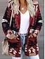 Női Pulóver Kardigán Elegáns Szüret Divat Grafika Mértani Terített nyak V-alakú Zseb Kötött Nyomtatott Hosszú ujj Normál felsők Kötött Szabadtéri Napi Hétvége Vörös Barna Medence Ősz Tél
