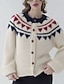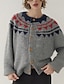 Női Karácsonyi pulóver Fair Isle pulóver Pulóver Kardigán Szüret Divat Utcai sikk Mértani Terített nyak Gombok Kötött Hosszú ujj Normál felsők Kötött Szabadtéri Napi Hétvége Medence Ősz Tél