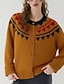 Női Karácsonyi pulóver Fair Isle pulóver Pulóver Kardigán Szüret Divat Utcai sikk Mértani Terített nyak Gombok Kötött Hosszú ujj Normál felsők Kötött Szabadtéri Napi Hétvége Sárga Sárgabarack Ősz Tél