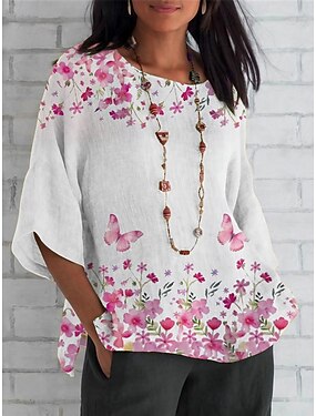 Női Ing Virágos Napi Alkalmi Háromnegyedes Terített nyak Normál felsők Napi Szabadság Nyomtatott Fehér Nyár Tavasz Ősz
