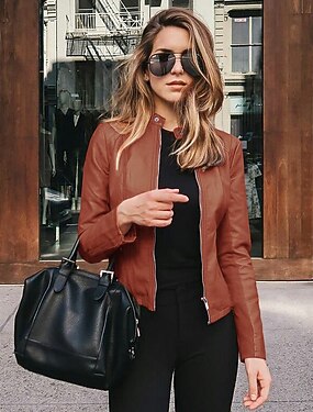 Női Kožnate jakne Vízálló Szélbiztos Szabadtéri Utca Hétköznapi viselet Alkalmi Cipzár Zseb Cipzár Hajtóka Modern Szabadtéri Alkalmi Utcai stílus Sima Normál Felsőruházat Hosszú ujj Ősz Tél