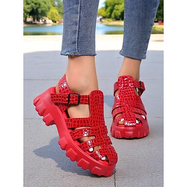 női piros lakkbőr ékszandál - peep toe leopárdmintás platform participők éjszakai élethez és klubviselethez