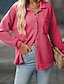 Női Ing Bársony elegáns Elegáns Sima Szüret Alkalmi Hosszú ujj Állógallér Normál felsők Szabadság Alkalmi Zseb Gombok Medence Bíbor Narancssárga Rózsaszín Ősz Tél