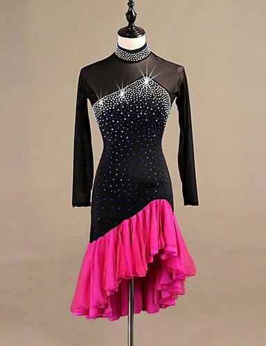 tánc salsa latin tánc ruha rojtos bojt hasított ízület kristályok / strasszok női edzés előadás hosszú ujjú chinlon mesh