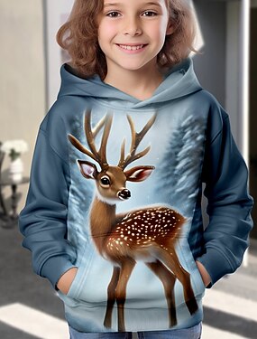 Lány 3D Állat Rajzfilm Szarvas Karácsonyi kapucnis pulóver Kapucnis felsőrész Pullover Hosszú ujj 3D nyomtatás Ősz Tél Aktív Divat aranyos stílus Gyerekek 3-12 év Szabadtéri Hétköznapi Napi Normál