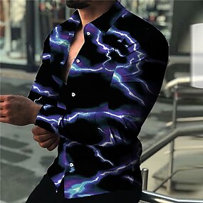 Férfi Villám Ing Hosszú ujj Divat Dizájn Alkalmi Szabadtéri Szabadság Nyár Tavasz Térfogatcsökkenés Nyomtatott Gomb lefelé Világossárga Fekete Fehér Sárga Rubin
