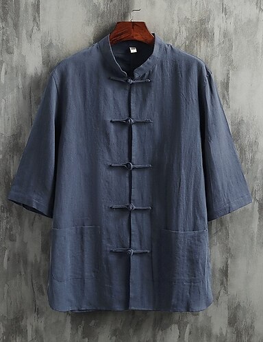 Férfi Ing Pamut vászon ing Fehér pamut ing Kínai galléros ing Mandarin galléros ing Alkalmi ing Sima Vakáció Utca Fehér Sötétkék Szürke Világoskék Rövid ujjú nagypapa gallér Nyár Ruházat Gomb lefelé