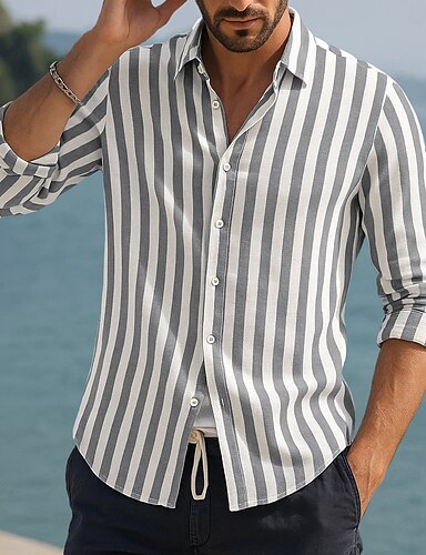Férfi Ing Vászon ing Nyári póló Strandruházat Gombos póló Függőleges csíkok Vakáció Curise Fekete Arcpír rózsaszín Medence Szürke Hosszú ujj Térfogatcsökkenés Nyár Tavasz Ruházat