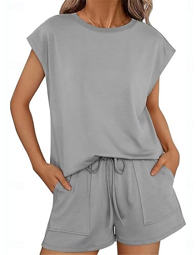 Női Aktív Blúz Rövidnadrág készletek Ujjatlan Terített nyak Tömör szín Zsinór Vakáció Hétköznapi viselet Fekete Katonai zöld Sötétkék Nyár Normál