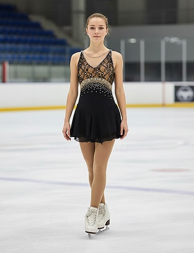 Kűrruha Női Lány Klizanje na ledu Ruhák Világosbarna Kollázs Nyissa meg a Vissza elemet Háló Nagy rugalmasságú Edzés Verseny Kűrruhák Klasszikus Kristály / Strassz Ujjatlan Jégkorcsolyázás