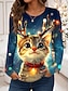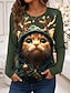 Karácsony Női Póló Grafika Cica Szüret Divat Stílusos Hosszú ujj Kerek Normál felsők Napi Hétvége Nyomtatott Hamvaszöld Medence Lóhere Ősz Tél