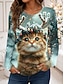 Női póló Kerek nyakú Hosszú ujjú Tunika Macska 3D Vicces Kerek nyakú Szabványos Felsők Napi Hétvégi Nyomat Világos Zöld Tengerészkék Kék Zöld Tavasz és Ősz