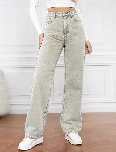 Női Farmerek Pamutszövet nadrág Egyenes Szabadság Szüret Utcai sikk Teljes hossz Közepes csípő Sima Zseb Rugalmas derék Kényelmes Nem elasztikus Mikroelasztikus Szabadtéri Utca Napi Fekete szürke
