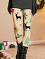 Női Leggingek Kényelmes leggings Alap Alkalmi Teljes hossz Magas derékPantsKarácsony Grafika Rénszarvas Nyomtatás Kényelmes Nyúlós Vakáció Hétköznapi Napi Khakizöld Tavasz Ősz Karcsúsított