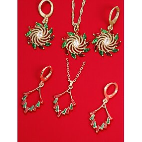 Női zöld kristály ékszerkészlet - elegáns, aranyozott nyaklánc és fülbevaló örvénydizájnnal, csillogó partikellékek karácsonyi ünnepségekre és ünnepi eseményekre