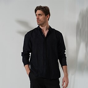 100% Vászon Férfi Ing vászon ing Gombos póló Fekete Sötétkék Hosszú ujj Csík Hajtóka Tavasz & Ősz Szabadtéri Napi Ruházat