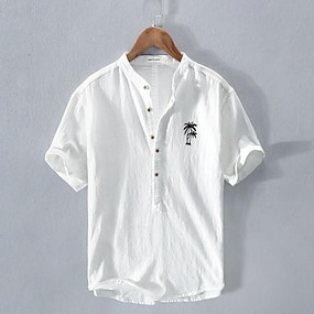 Férfi Ing vászon ing Pamut vászon ing Fehér pamut ing Minimalista Aloha ing Kínai galléros ing Kókuszfa Vakáció Utca Fehér Sötétkék Szürke Világoskék Rövid ujjú Álló gallér Nyár Ruházat