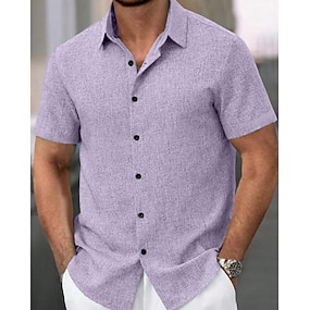 Férfi Ing Nyári póló Alkalmi ing Gombos póló Pamut póló Sima Tengerpart Vakáció Fekete Arcpír rózsaszín Égszínkék Bíbor Rövid ujjú Térfogatcsökkenés Nyár Ruházat