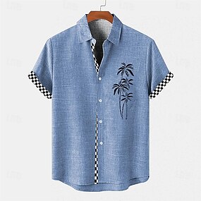 Férfi Ing vászon ing Stranding Hawaii ing Kókuszfa Vakáció Szabadság Arcpír rózsaszín Medence khakizöld Rövid ujjú Térfogatcsökkenés Nyár Ruházat
