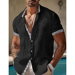 Férfi Vászon ing Nyári póló Strandruházat Gombos póló Mértani Vakáció Hétköznapi Fekete Fehér Medence Rövid ujjú Térfogatcsökkenés Nyár Tavasz Ruházat Kollázs