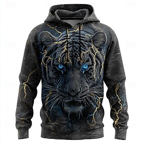 Férfi Oroszlán Kapucnis felsők Pulóver Divat Menő Napi Hosszú ujj Terített nyak Parti Szabadság Utcai öltözék Fekete Zsinór Ősz Tél Tervező S M L XL XXL XXXL