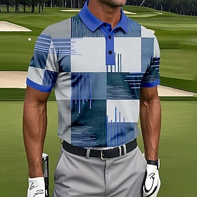 Férfi Geometriai Golf Sportpólóingek Rövid ujjú Pólóingek Galléros ingek Alkalmi Sportruházat Gombok Tavaszi nyár Medence Bíbor Lóhere