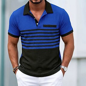 Férfi Golfing Gofri kötött pólóing Hétköznapi Üzleti Klasszikus Rövid ujjú Divat Modern Tömör szín Csíkos Színes Gombok Tavaszi nyár Nyár Tavasz Normál Fehér Királykék Lóhere Khakizöld Szürke Golfing
