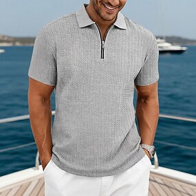Férfi Gofris pólóingek Pólóingek Hétköznapi Napi Negyed irányítószám Rövid ujjú Divat Alap Színes Cipzár Könnyű Nyár Tavasz Normál Fekete Fehér Sötétkék khakizöld Szürke Gofris pólóingek