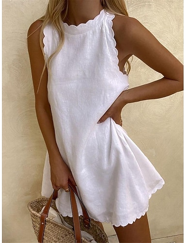 Női Mini ruha Nyári ruha Fehér ruha Pamut vászon ruha Alap Alkalmi Napi Vakáció Randi Normál Sima Ujjatlan Terített nyak Medence Fekete Fehér Arcpír rózsaszín Nyár Tavasz