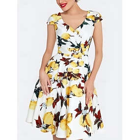 Retró 1950-es Rockabilly Térdig érő Köntösruha Swing ruha Flare ruha Szabályos Csapott Virágminta A-vonalú V-alakú Jelmez Női Farsang Valentin nap Vakáció Hétköznapi Hétköznapi viselet Felnőttek Ruha