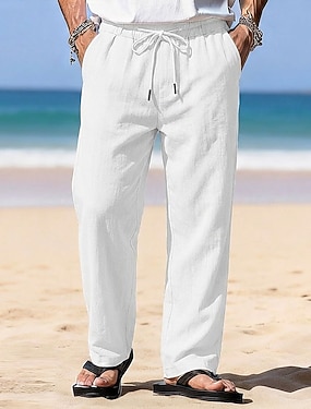 Férfi Vászon nadrág Nadrág Nyári nadrág Strand nadrág Zsinór Rugalmas derék Egyenes lábbal Sima Mokaszinok Légáteresztő Teljes hossz Hétköznapi Napi Szabadság Szabadság Divat Fehér Égszínkék