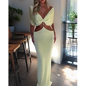 Női Térdig érő ruha Szatén ruha Bodycon Elegáns Divat Modern Szabadtéri Vakáció Alkalmi Normál Sima Rövid ujjú V-alakú Pezsgő Nyár Tavasz