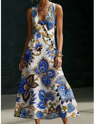 Női Midi ruha Boho ruha Ingruha Nyári ruha Elegáns Csehország Etno Tengerpart Szabadság Normál Virágos Grafika Ujjatlan V-alakú Medence Arcpír rózsaszín Narancssárga Nyár Tavasz