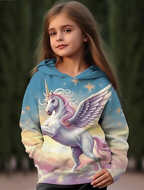 Lány 3D Rajzfilm Egyszarvú Kapucnis felsőrész Pullover Hosszú ujj 3D nyomtatás Ősz Tél Aktív Divat aranyos stílus Gyerekek 3-12 év Szabadtéri Hétköznapi Napi Normál