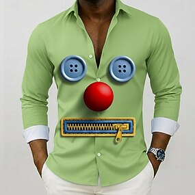 Férfi 3D nyomtatás Gombos cipzáras arc Ing Gombos póló Hosszú ujj Vicces Szabadtéri Hétköznapi Tavasz Ősz Térfogatcsökkenés 3D nyomtatás galléros ingek Medence Bíbor Lóhere