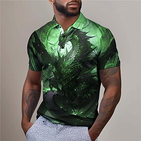 Férfi Sárkány Golfing Rövid ujjú Pólóingek Galléros ingek Alkalmi Vicces Nyaralási viselet Party ruhák Gombok 3D nyomtatás Nyár Sárga Rubin Medence