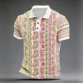 Férfi Paisley Pólóingek Rövid ujjú Pólóingek Galléros ingek Alkalmi Sportruházat Odjeća za aktivnosti na otvorenom Hétköznapi viselet 3D nyomtatás Gombok Tavaszi nyár Medence Bíbor Lóhere