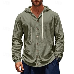 Férfi Ing Vászon ing Popover ing Nyári póló Strandruházat Kapucnis ing Tömör szín Vakáció Utca Fehér Világoszöld Medence Lóhere Hosszú ujj Kapucni Nyár Tavasz Ruházat