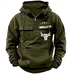 Férfi Jávorantilop Kapucnis felsőrész Kapucnis felsők Pulóver Divat Napi Etno Hosszú ujj Kapucni Szabadság Vadászat Utazás Fekete Medence Barna Lóhere Zsinór Cipzár Zseb Ősz Tél Tervező S M L XL XXL