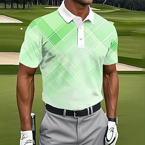 Férfi Geometriai Golf Sportpólóingek Rövid ujjú Pólóingek Hajtóka Alkalmi Sportruházat 3D nyomtatás Gombok Nyár Medence Világoszöld Rubin